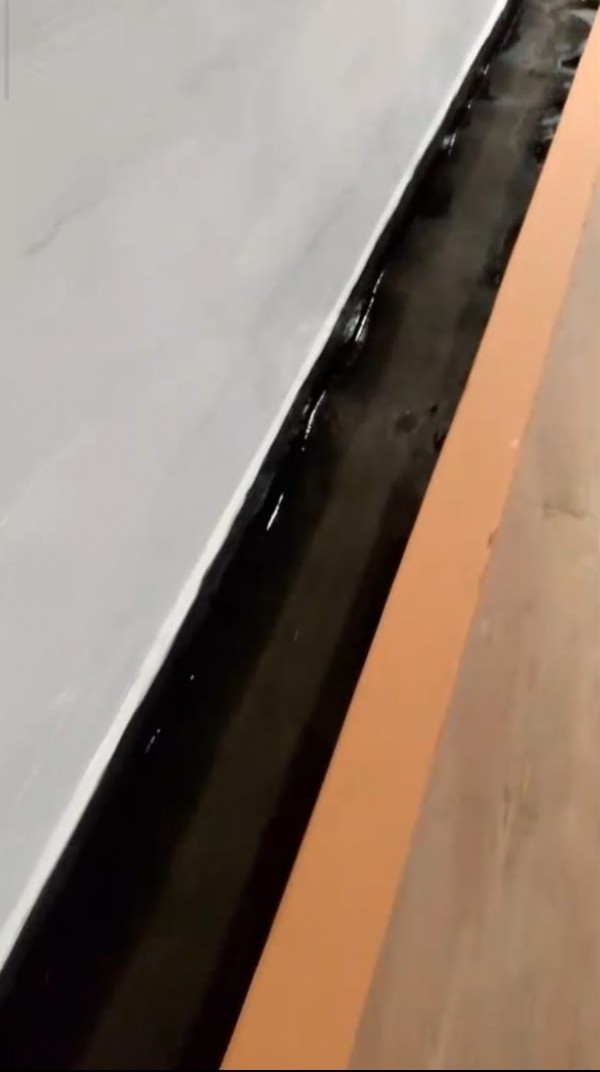 Una vez corregidas las fisuras, se instaló un sistema impermeabilizante bituminoso reforzado con malla, creando una membrana continua y resistente al paso del agua. La malla de refuerzo permite absorber micro movimientos y mejora la resistencia mecánica del sistema frente al flujo constante de aguas lluvias.