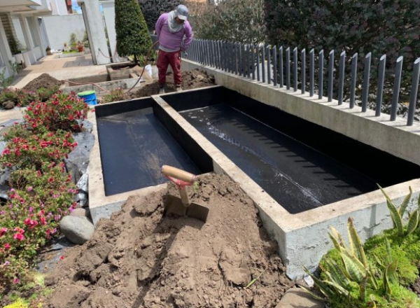Reinstalación técnica del jardín, con capas drenantes y protección mecánica duradera.