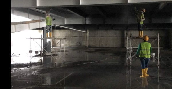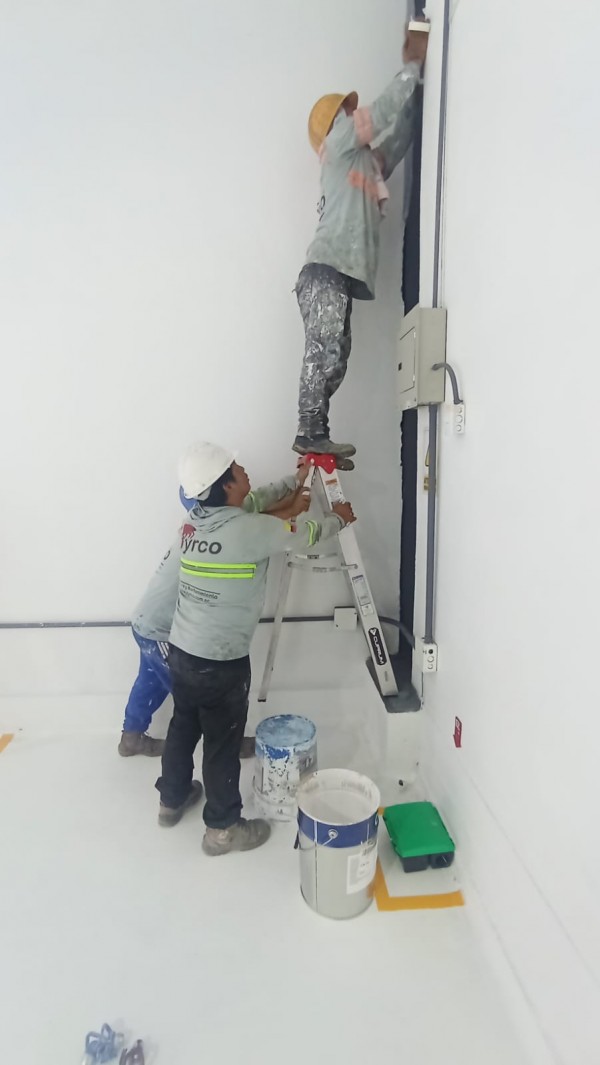 Se aplicó el sistema C-THERM W910, pintura intumescente de base acuosa con certificación CE, cumpliendo con las normativas europeas y americanas de protección contra incendios para estructuras de acero. Se proyectaron 450 micras de espesor seco utilizando equipos de aspersión airless Graco, optimizando rendimiento y cobertura con mínima cantidad de manos.