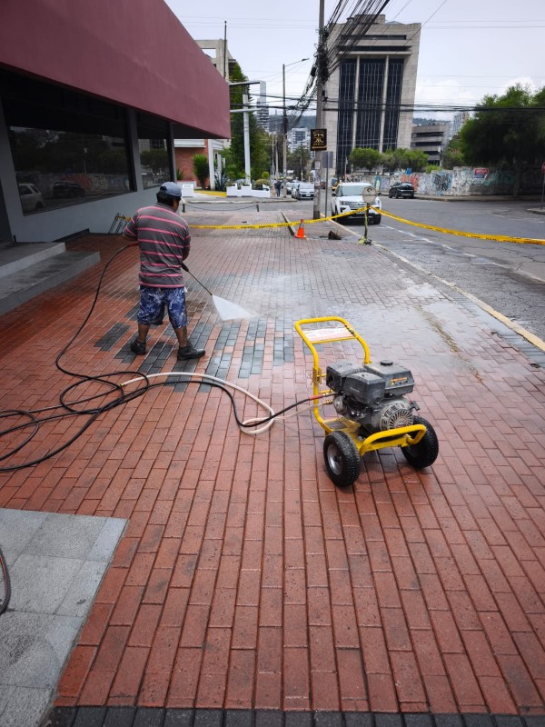 Se aplicaron jabones industriales biodegradables, amigables con el ambiente, dosificados según el nivel de suciedad y el tipo de adoquín. Actúan sobre grasas, polvo fino y depósitos contaminantes sin alterar el sustrato.